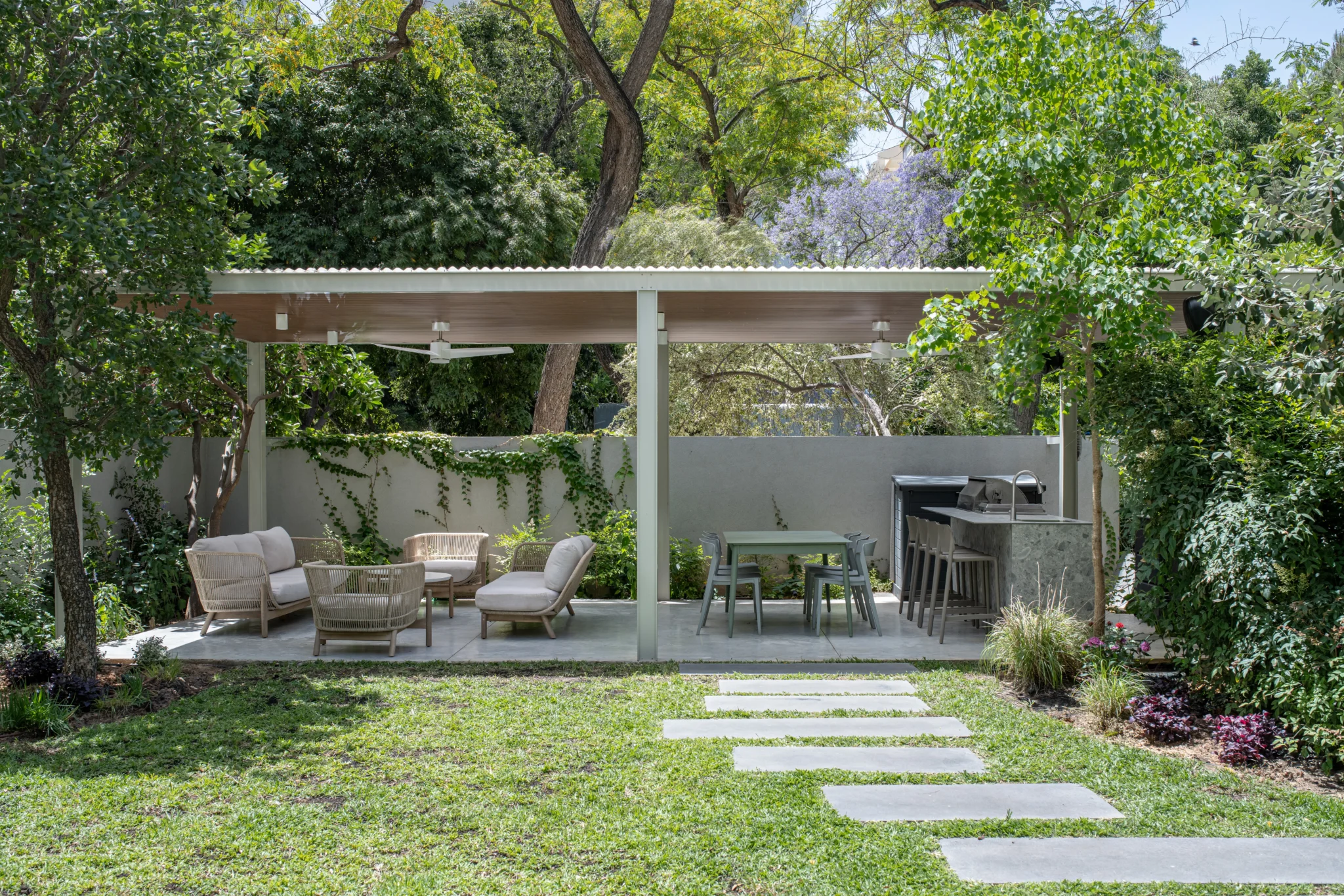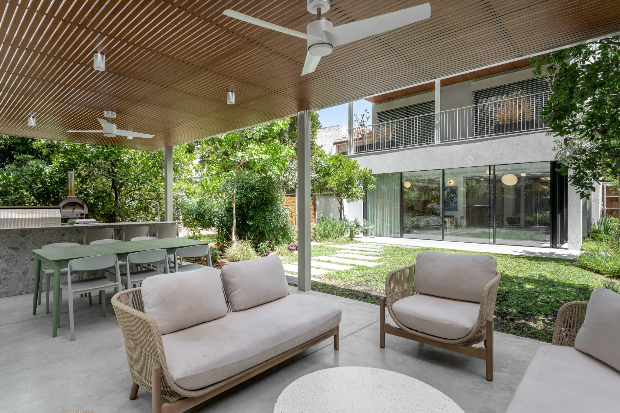 אנו מייחסים משמעות רבה לשילוב בין פנים הבית לטבע שמחוץ לבית תוך כדי הקפדה וחשיבה על גינות חסכוניות במים הדורשות אחזקה נמוכה ומשתבחות עם הזמן.